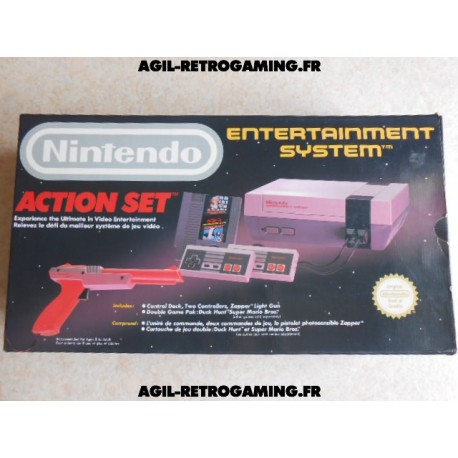 La Nintendo Entertainment System, NES est sortie en 1985 (arrivée en 1987 en France) suite au succès de la Family Computer (Famicom) lancée au Japon dès 1983. Il s'agit d'une console 8 bits jouable à l'aide de manettes à 4 boutons et équipées d'un pad multi-directionnels. La NES a servi de support de lancement à des séries de jeux tels que Super Mario Bros, The Legend of Zelda, Dragon Quest, Donkey Kong, Double Dragon, Megaman, Final Fantasy... Acheter sa NES dans notre boutique retrogaming c'est l'assurance de recevoir une console qui fonctionne parfaitement. Pas besoin de souffler dans les cartouches ou autres : toutes les consoles sont testées et certifiées.