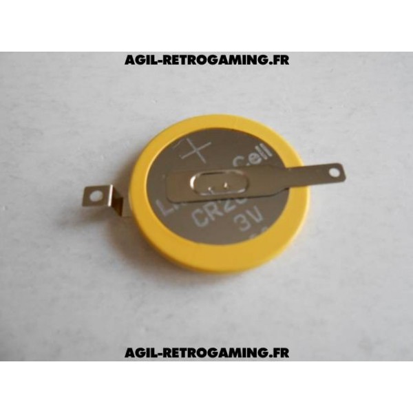 Pile de rechange neuve CR2025 avec pattes de fixation, pour la sauvegarde des cartouches de jeux Game Boy et Game Boy Color (notamment présente dans les cartouches Pokémon Version Crystal, Or et Argent, mais aussi dans de nombreux autres jeux à sauvegarde : à vérifier en ouvrant la cartouche).