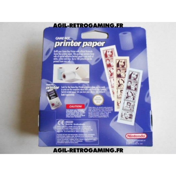 Lot de 3 rouleaux Nintendo officiel pour imprimante Game Boy Printer : 3 rouleaux de papier adhésif aux coloris jaune, bleu et blanc (printer paper) sous blister dans leur boite d'origine.