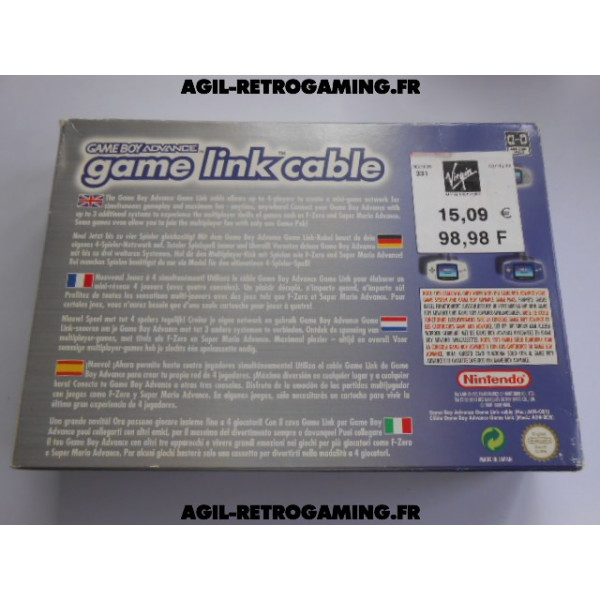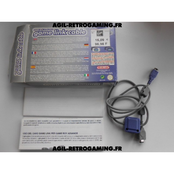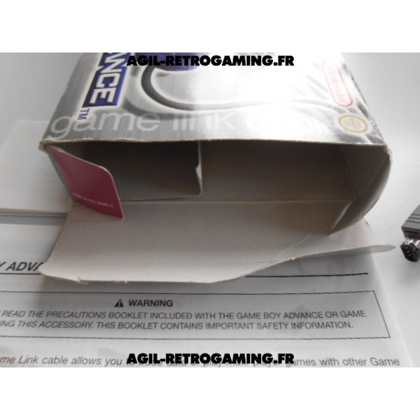 Câble de liaison pour 2 joueurs en excellent état avec sa boite d'origine (très légèrement abîmée) et ses notices pour Game Boy Advance (permet de connecter deux, trois ou quatre consoles GBA).
