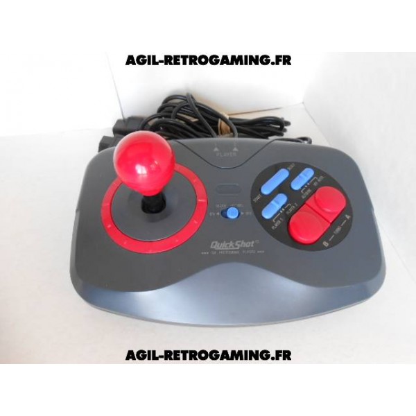 Stick QuickShot pour 2 joueurs sur Nintendo NES : Pad arcade avec fonctions Auto-Fire et Slow-Motion, en très bon état et fonctionne parfaitement.