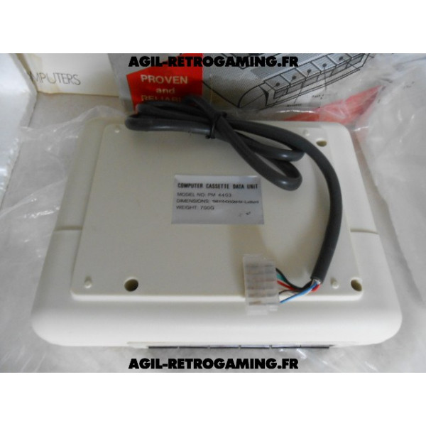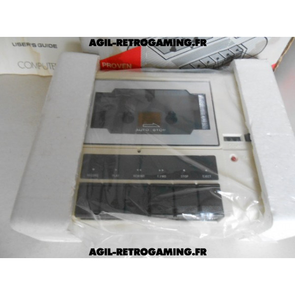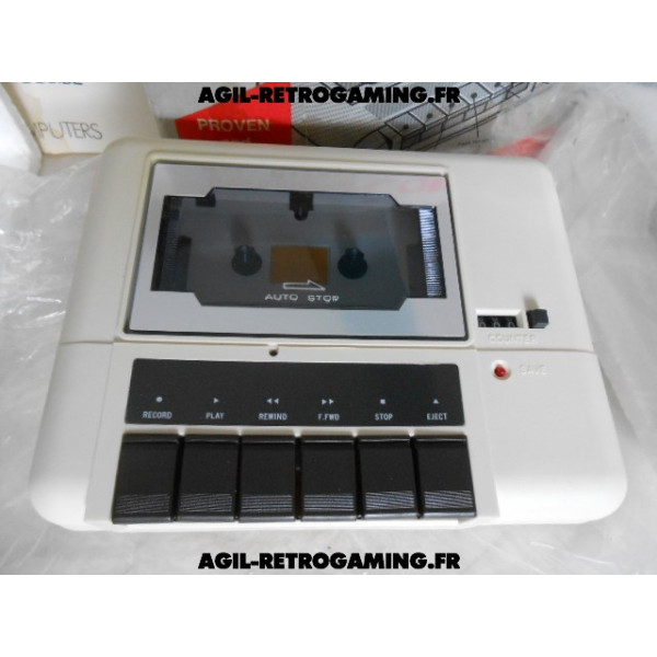 Lecteur-enregistreur de cassette pour Commodore 64 complet : Boite avec polystyrènes internes, sachet plastique de protection d'origine et mode d'emploi (beaucoup de pages sont collées entre-elles, mais restent à peu près lisibles), le lecteur K7 est en excellent état et semble n'avoir jamais été utilisé.