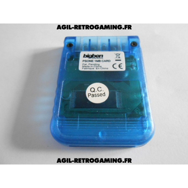 Carte mémoire Big Ben Interactive formatée 1 Mo (15 blocs) bleue translucide pour Playstation (PS1, PS One), en bon état et fonctionne parfaitement.