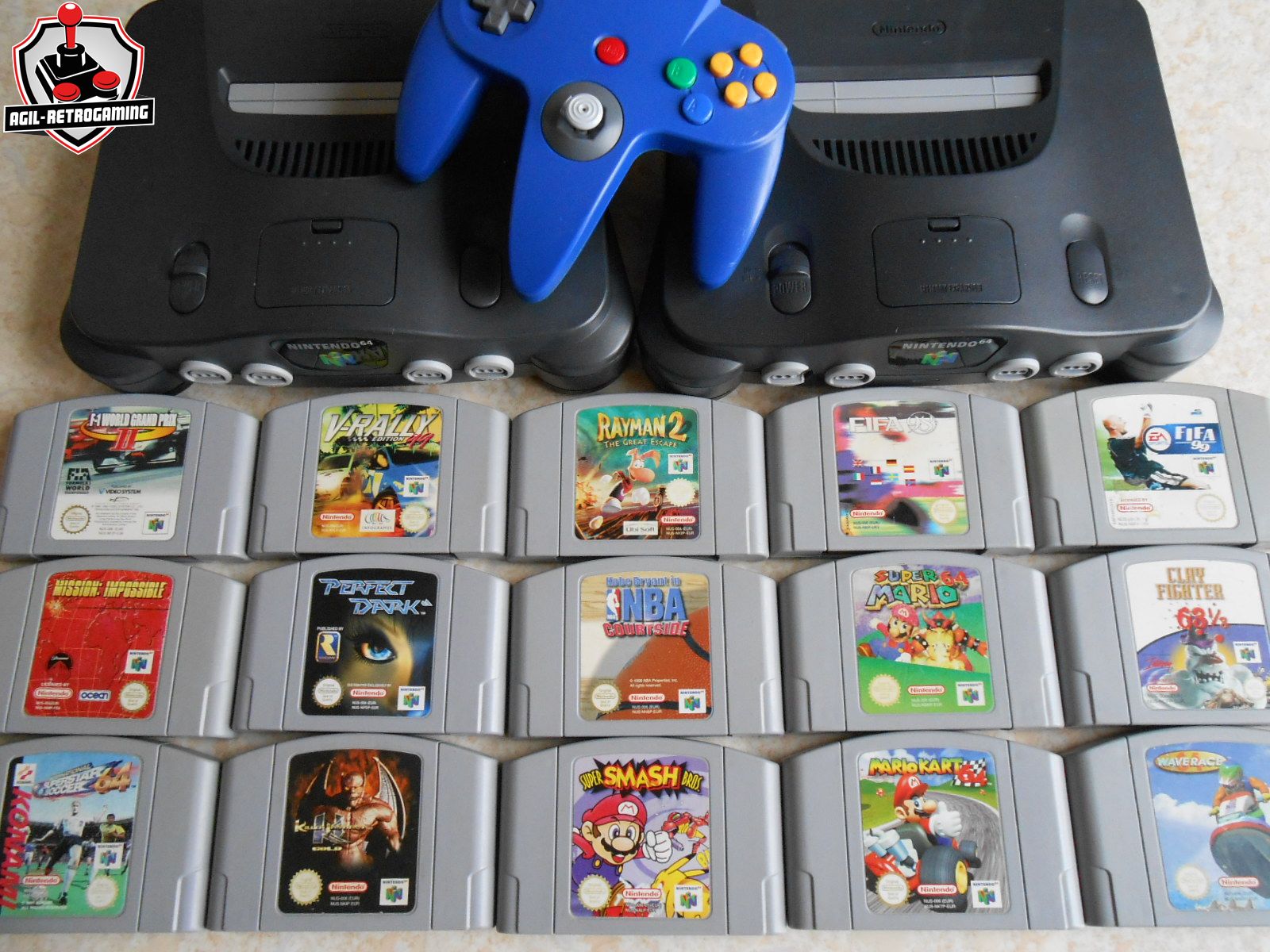 On continue avec la Nintendo 64 et deux consoles (un modèle NUS-001 EUR, le second FRA), accompagnées de quelques jeux N64 en loose avec des titres de qualité comme Mario Kart 64, Perfect Dark, Killer Instinct Gold, Super Mario 64 et Super Smash Bros : le premier de la série !