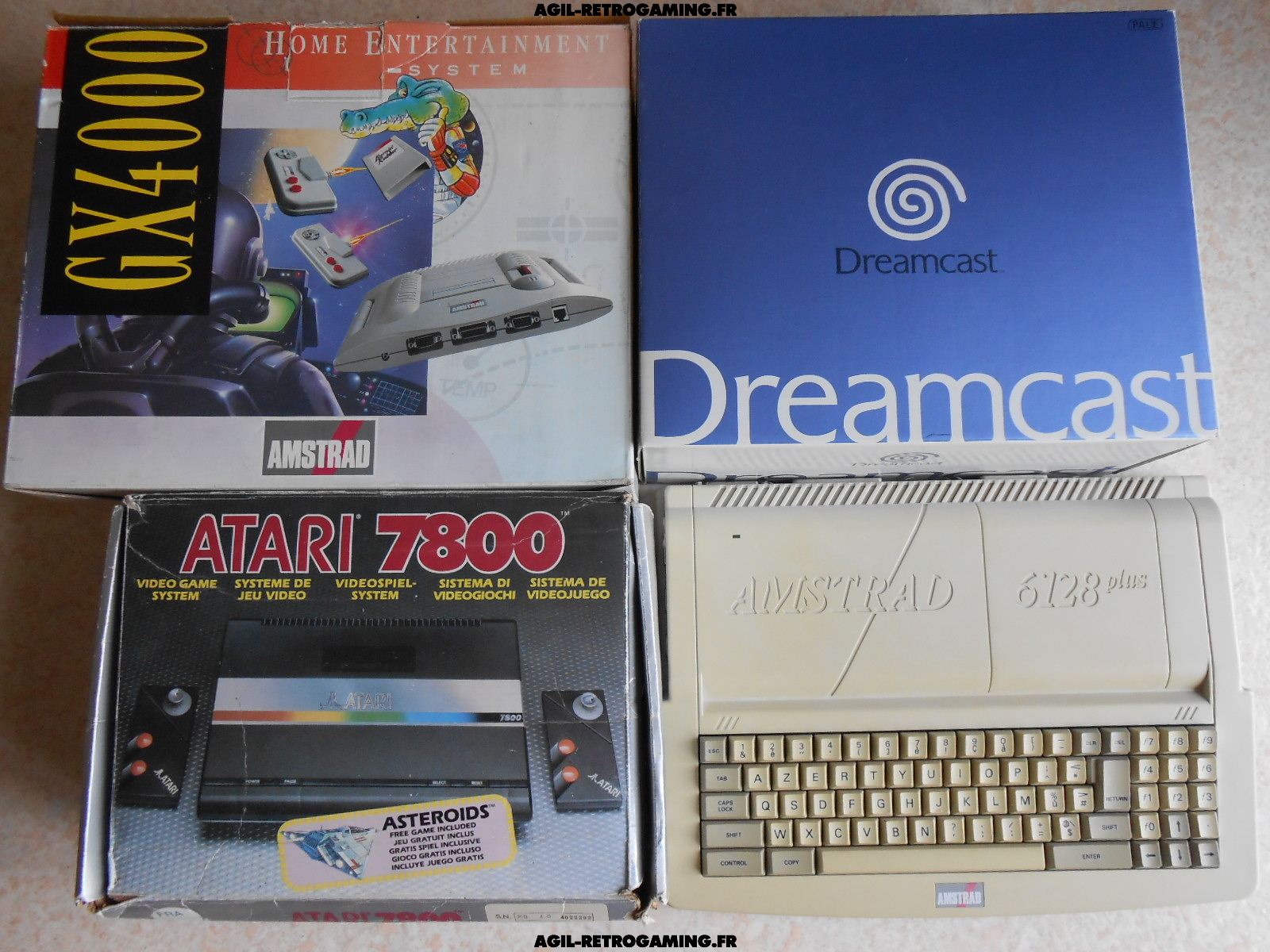 Et pour finir, quelques consoles rétro comme l’Atari 7800 en boite, l’Amstrad GX-4000 et 6128 Plus, ainsi qu’une Sega Dreamcast en boite :