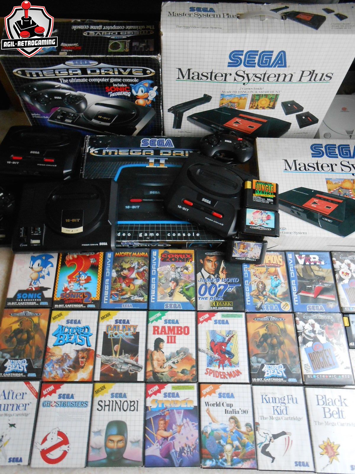 Nous vous avons réservé quelques consoles et jeux Master-System et Megadrive en boite ! Avec des packs Mega-Drive Sonic The Hedgehog, Megadrive II, Master-System Plus : Hang-On/Safari Hunt et une bonne dizaine de jeux de qualité pour chacune comme Altered Beast, Mickey Mania, Comix Zone, Strider, Galaxy Force…