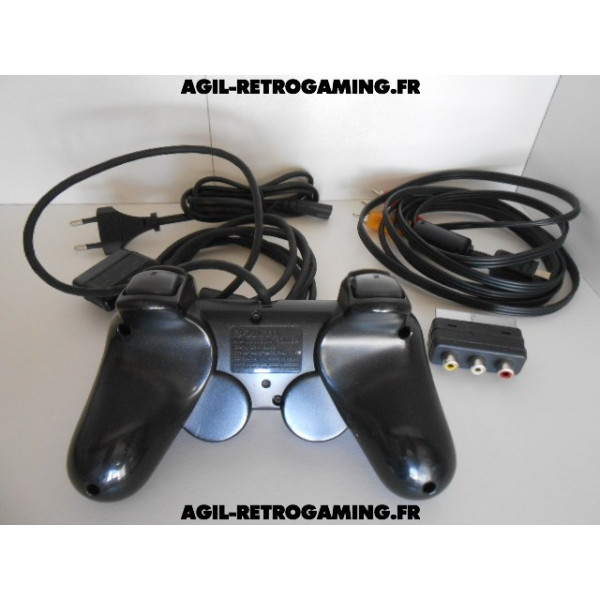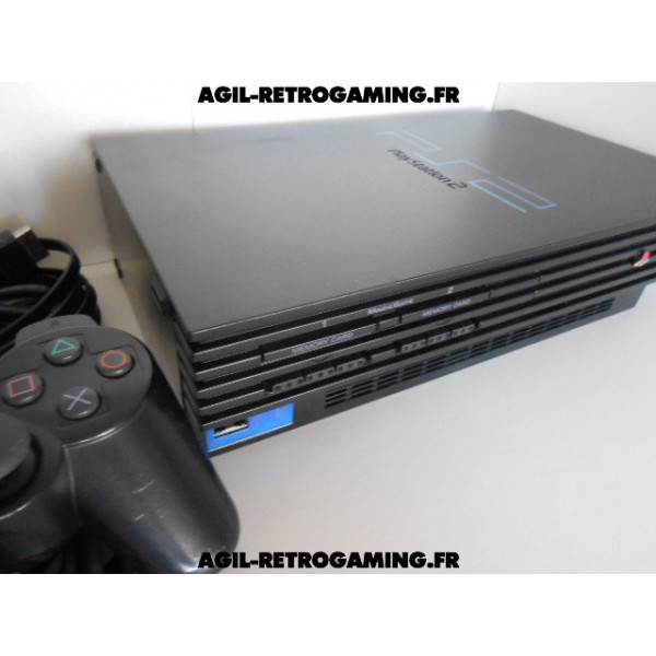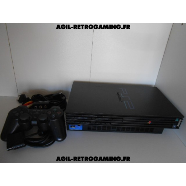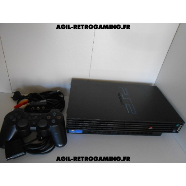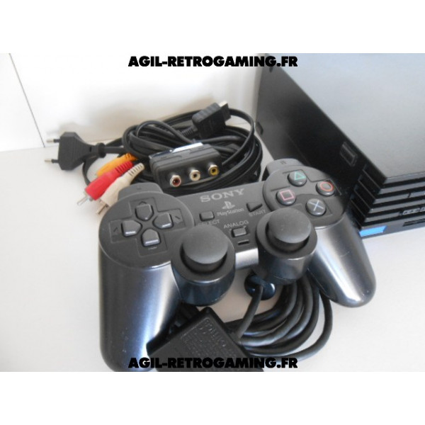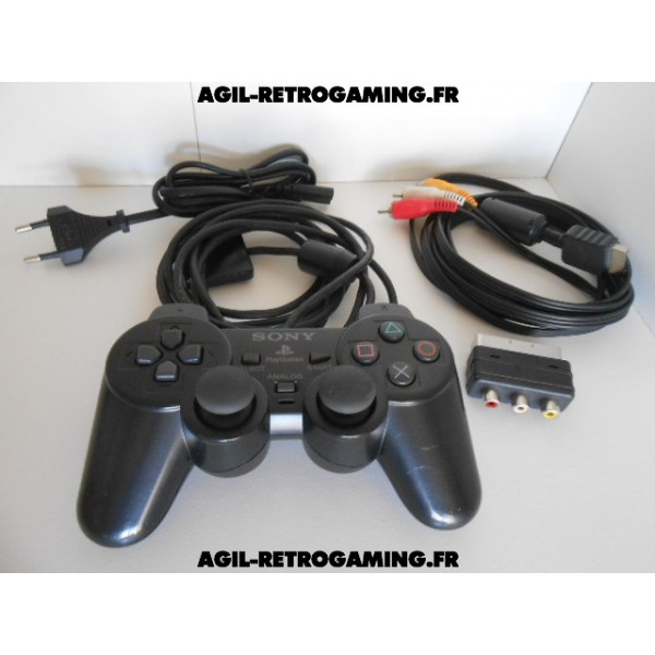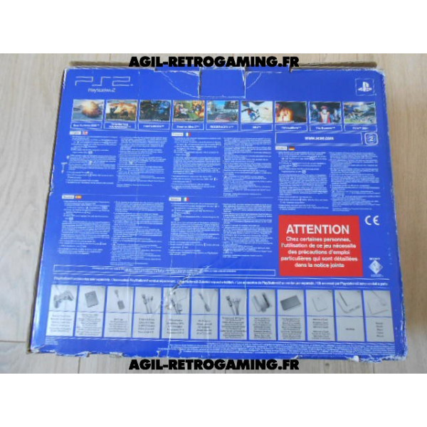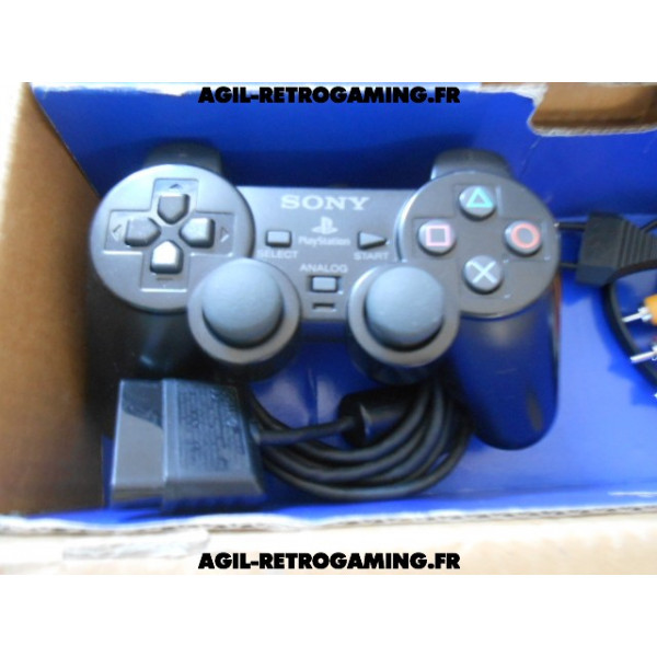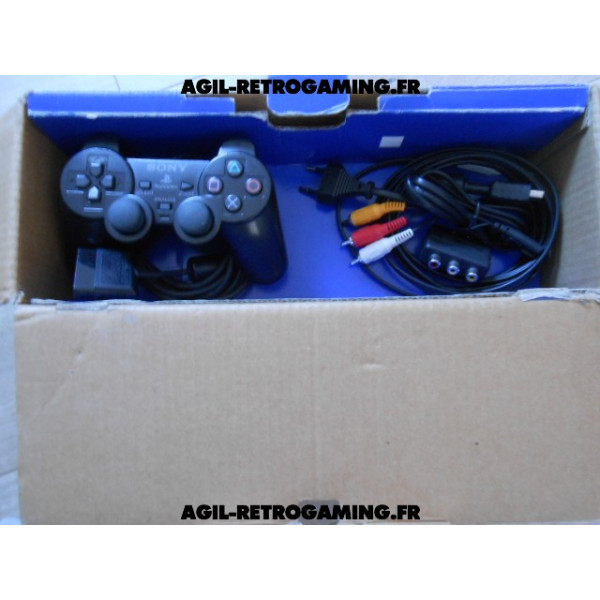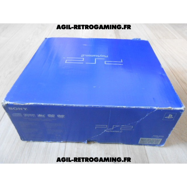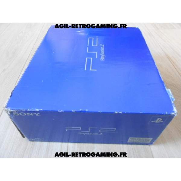Pack PS2 prêt à jouer : Console en boite avec tous ses câbles de connexion et sa manette officielle Sony assortie.