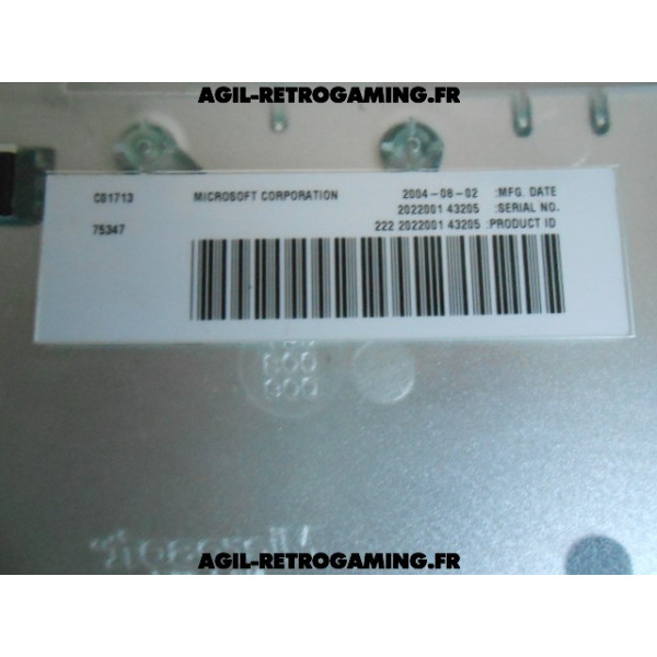Console Xbox Crystal première génération en très bon état (jamais ouverte, 100% d'origine, lecteur Samsung) du 02.08.2004 avec tous ses câbles et une manette Big Ben Interactive. Le tout fonctionne parfaitement, product n° 222 2022001 4325.