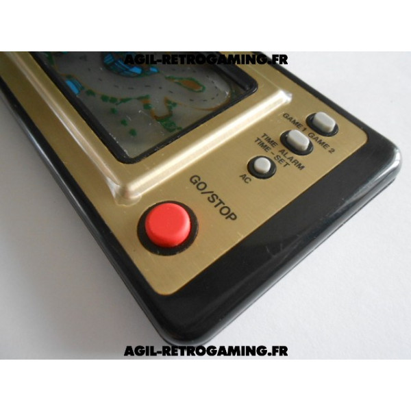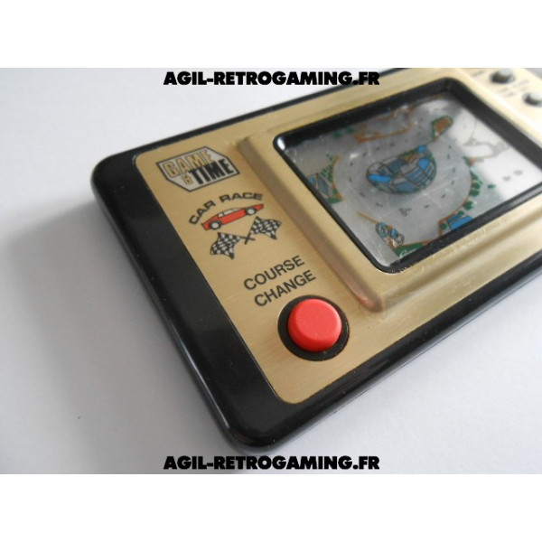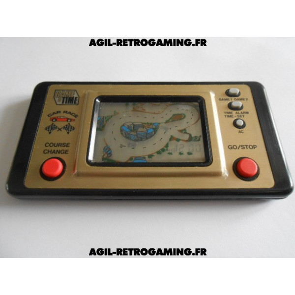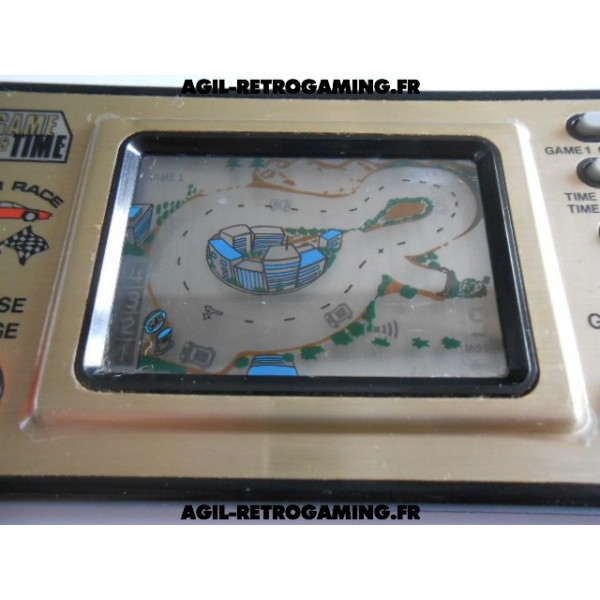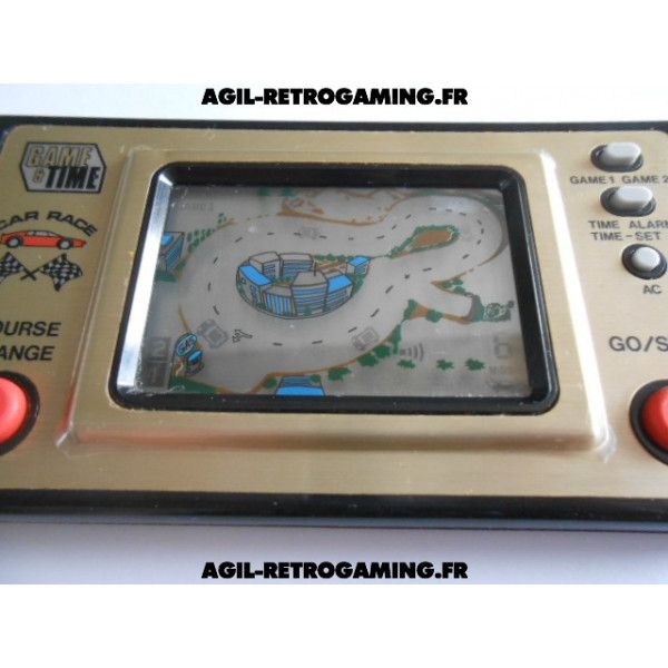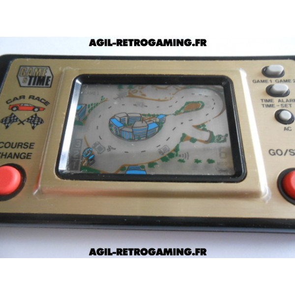 Game and Time - Car Race avec son cache-piles et sa béquille, fonctionne parfaitement. Le film de protection plastique d'origine est encore présent : la façade dorée ne comporte donc aucune rayure (livré sans pile, nécessite 2 piles LR44)