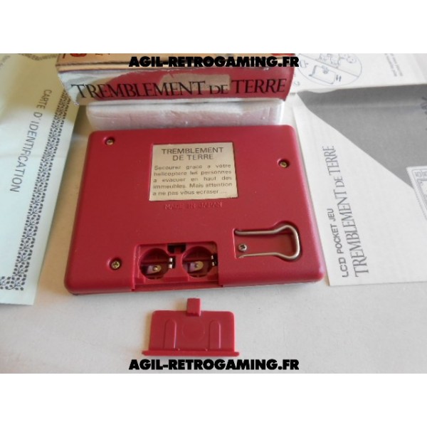 Jeu type Game & Watch Lansay : Tremblement de Terre complet et en très bon état (juste une déchirure au dos de la boite, notices et bon de garantie présents, version française), le jeu fonctionne parfaitement. Livré avec 2 piles LR44 neuves (cache-piles présent).
