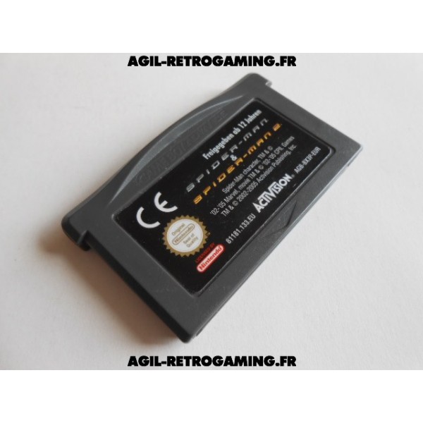 Cartouche seule en bon état avec sauvegarde fonctionnelle - version européenne PAL-FR. Pack de 2 jeux en 1 : Spider-man et Spider-man 2 pour Game Boy Advance.