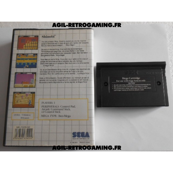 Shinobi SMS est un jeu d'action/plates-formes sorti en 1988 sur Master System: Vous êtes un maître Ninja. Vous allez vous battre contre tout un groupe de terroristes armés et adeptes des arts martiaux absolument sans scrupule. Mais vous avez une arme secrète.... la magie Ninja !