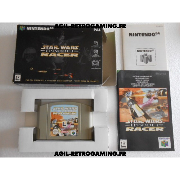 Star Wars Episode I : Racer 64 est un jeu de course futuriste édité par Lucas Arts inspiré du film Star Wars Episode I : La Menace Fantôme. 20 parcours sont proposés et 23 pilotes tirés du film sont disponibles sur N64.