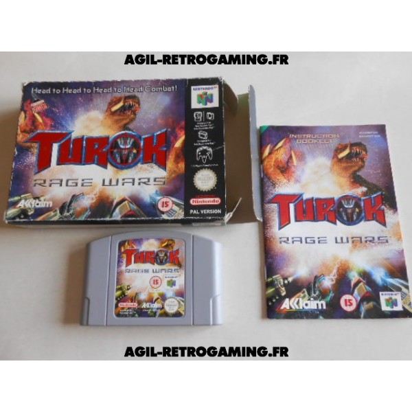 Turok Rage Wars N64 est un jeu de tir à la première personne (FPS) sorti en 1999 sur Nintendo 64 et faisant partie de la série Turok mais contrairement à ses prédécesseurs celui-ci est dédié au mode multi-joueurs (jouable de 1 à 4 joueurs).