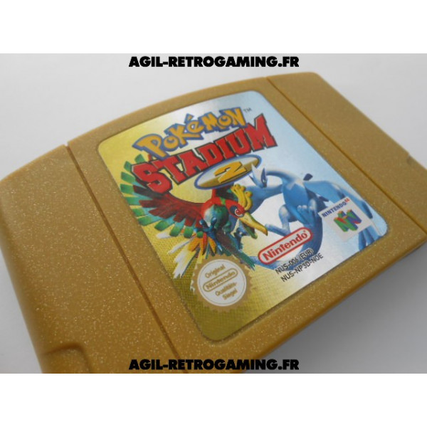 Pokémon Stadium 2 pour N64 est un jeu de combat de Pokemon sorti en 2001 sur Nintendo 64 en Europe. Il s'agit de la suite de Pokemon Stadium, le joueur peut toujours importer ses pokemons sur N64 grâce au transfert pak (vendu séparément) : il faut préalablement avoir capturé des pokemons dans les versions bleu, rouge et jaune des jeux Game Boy. Le jeu supporte aussi les versions Game Boy Color, à savoir : Pokemon Or, Argent, Crystal GBC.