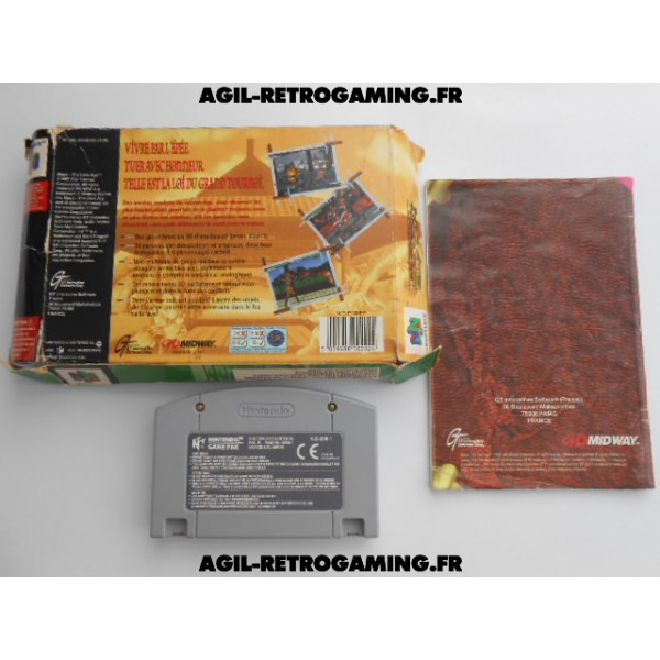 Jeu en boite avec notice : Boite un peu abîmée (deux languettes manquantes, sans support interne), mode d'emploi et cartouche en bon état, version européenne PAL-FRA pour Nintendo 64.