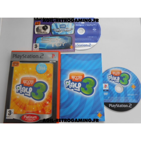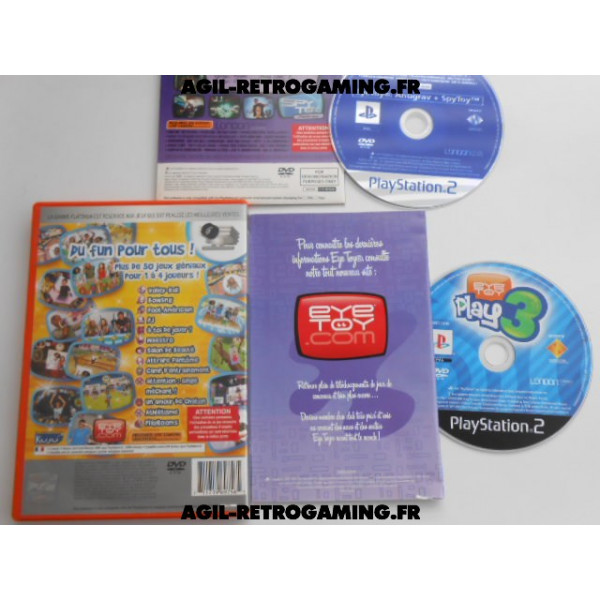 Eye Toy: Play 3 PS2 est une compilation de mini-jeux sur Playstation, nécessite une camera USB Eye Toy pour PS2 (accessoire vendu séparément).