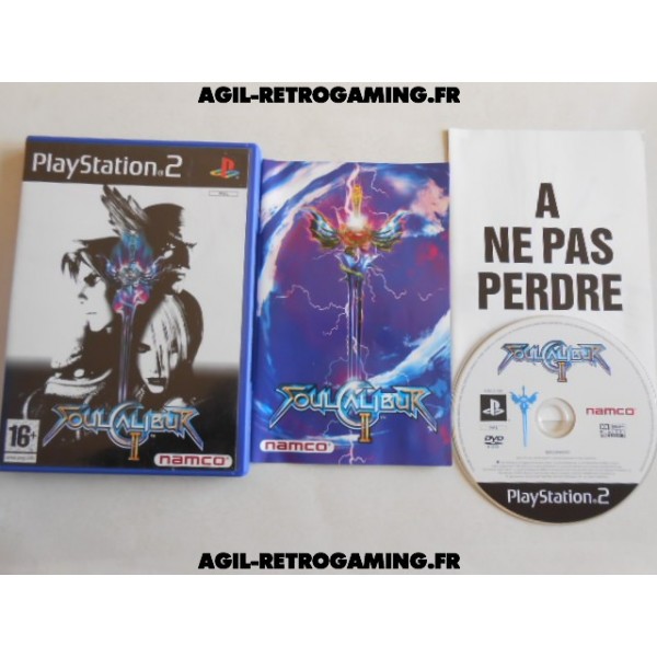 SoulCalibur II PS2 : Jeu de combat sur Playstation 2, développé par Namco. Ce jeu a été adapté sur PS2, Xbox et Game Cube et chaque version dispose d'un personnage inédit, à savoir Heihachi Mishima de Tekken pour la version Playstation 2.