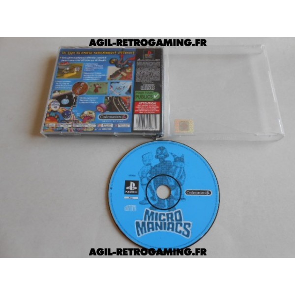 Micro Maniacs PS1 est un jeu de course dans l'univers des micro-machines, sorti en 2000 sur Playstation. C'est un jeu fun, comptant 41 circuits et 8 personnages + 4 cachés sur PS1.