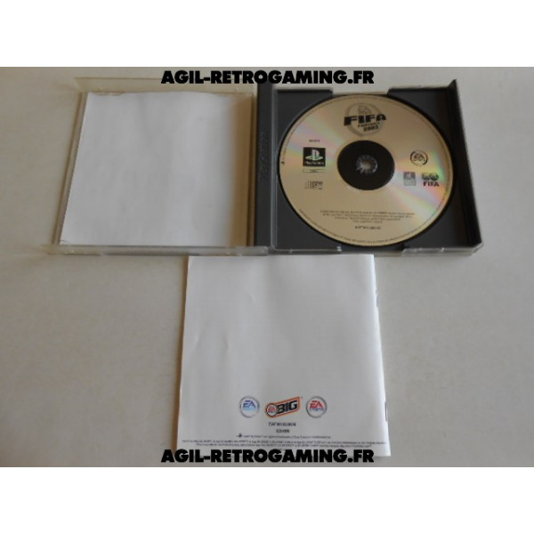 FIFA Football 2003 d'occasion sur Playstation (jouable à 1 ou 2 joueurs et jusqu'à 8 avec le multi-tap, accessoire vendu séparément).