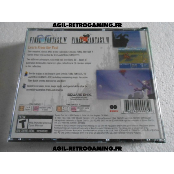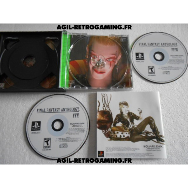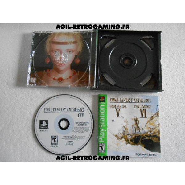 Final Fantasy Anthology PS1 en version US est une compilation de 2 jeux Final Fantasy à savoir : Final Fantasy V et Final Fantasy VI sortie en 1999 sur Playstation (à la différence de la version européenne qui contient Final Fantasy IV et Final Fantasy V).