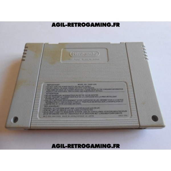 Cartouche de jeu seule en bon état avec pile de sauvegarde fonctionnelle (quelques traces de jaunissement), version européenne PAL-FAH pour Super Nintendo.