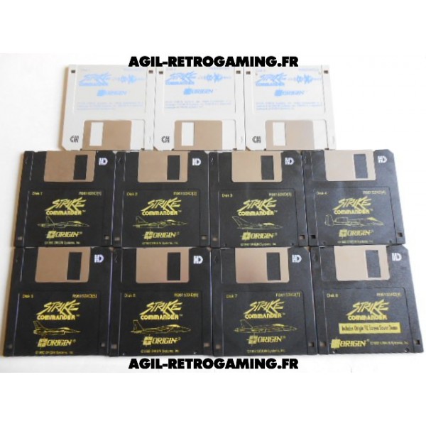 Strike Commander (en huit disquettes) & Speech Pack (extension en trois disquettes, remplaçant les dialogues textuels par des enregistrements vocaux) soit 11 disquettes au total.