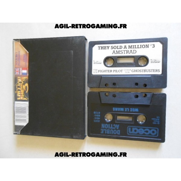 They Sold A Million #3 pour Amstrad Pack comprenant 4 Blockbusters sur 2 cassettes à l'origine : Il manque la cassette de Rambo et Kung-Fu Master, la cassette de Fighter Pilot et Ghosbusters est bien présente et en remplacement de la cassette manquante, le jeu Wec Le Mans (pour Amstrad 464, 664 et 6128).