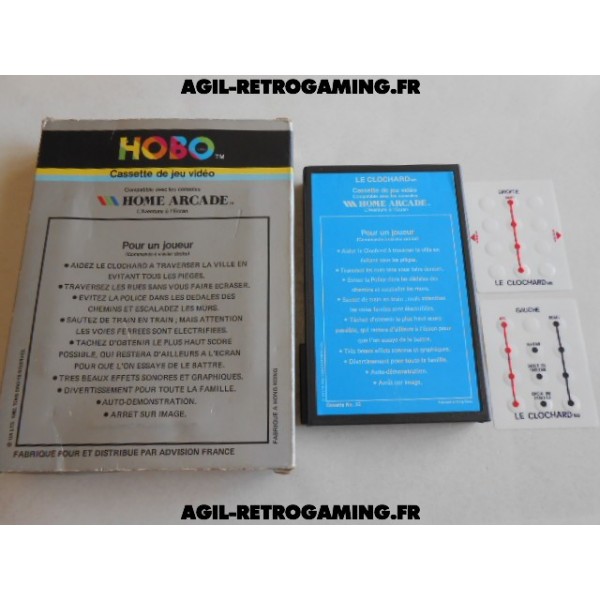 Hobo : Jeu en boite sans notice mais avec les deux filtres pour les pads, en bon état pour console Home Arcade - L'Aventure à l'écran.