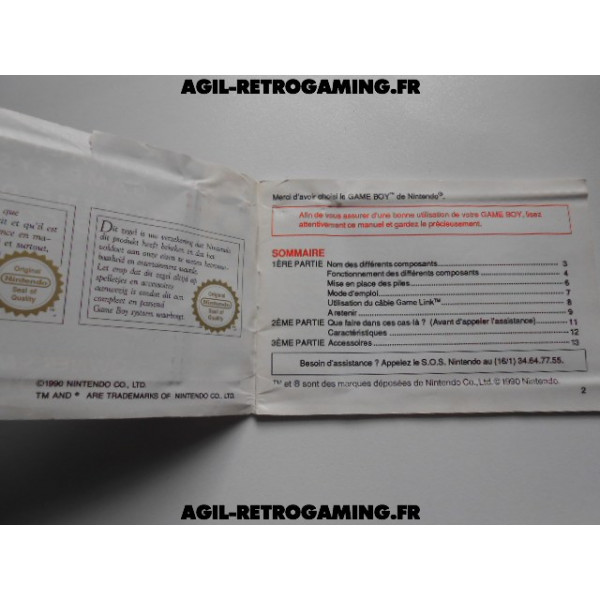 Notice d'utilisation pour Console Game Boy comportant des marques et plis (en français et hollandais).