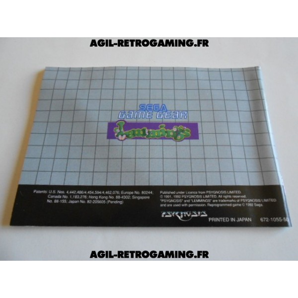 Manuel Officiel du jeu Lemmings sur Sega Game Gear.