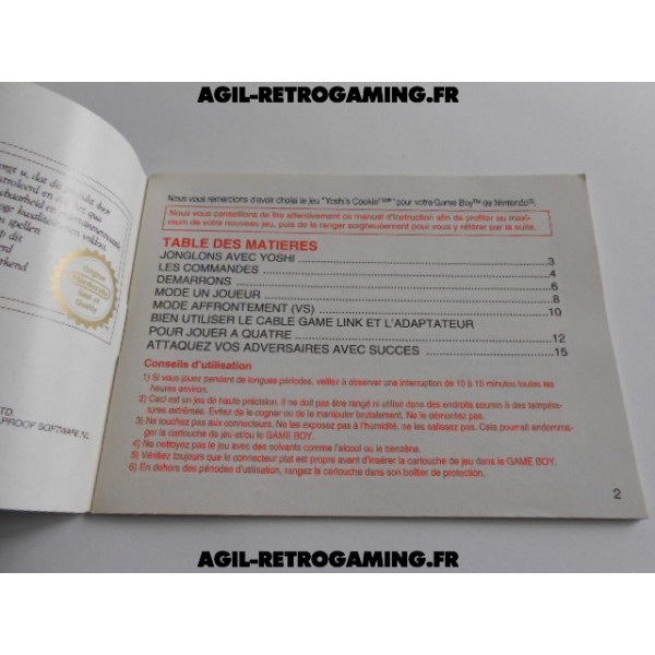 Manuel d'instructions FAH du jeu Yoshi's Cookie GB : Notice Game Boy.