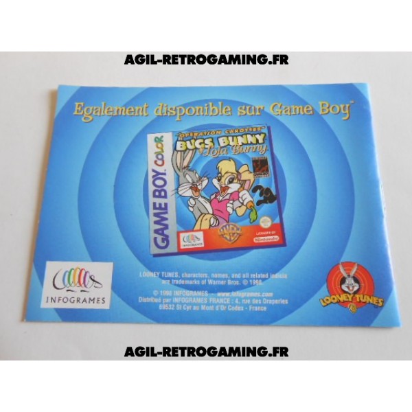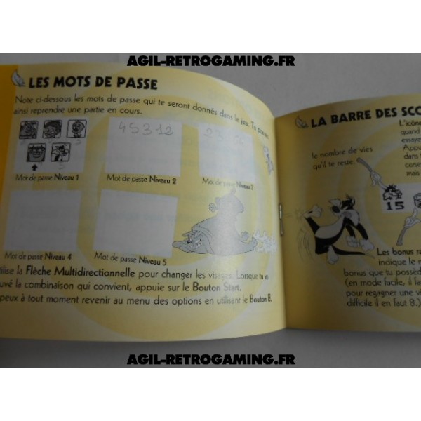 Notice du jeu Titi et Grosminet Déjeuner en Cavale sur Game Boy Color en très bon état (juste quelques codes inscrits au crayon de papier dans les emplacements prévus à cet effet), intégralement en français (FRA).