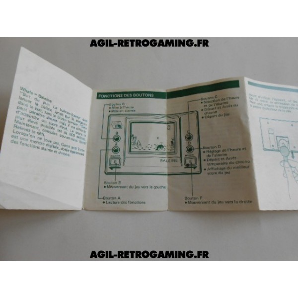 Manuel d'instruction du jeu électronique : Baleine (Whale) en bon état. Mode d'emploi intégralement en français.