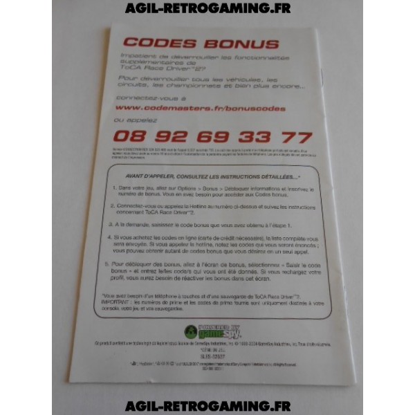 Manuel d'utilisation du jeu TOCA Race Driver 2 sur PS2, en très bon état et intégralement en français.