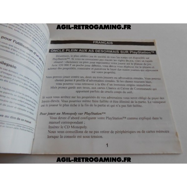 Mode d'emploi du jeu Monopoly PS1 en édition originale pour Playstation, en bon état et intégralement en français.