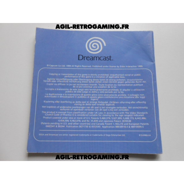 Notice du jeu Power Stone sur Sega Dreamcast, complète et en bon état, en multi-langues dont le français.