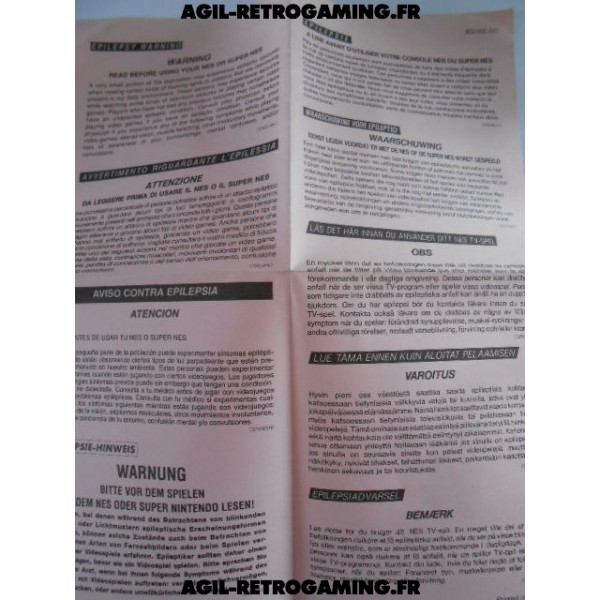Dépliant : Avertissement épilepsie pour NES et Super NES, en bon état.
