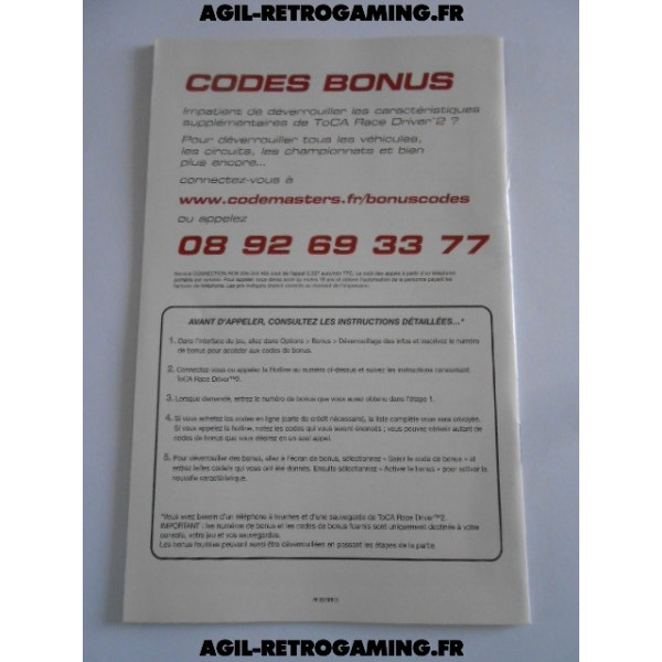 Manuel d'utilisation du jeu TOCA Race Driver 2 sur Xbox, en très bon état et intégralement en français.