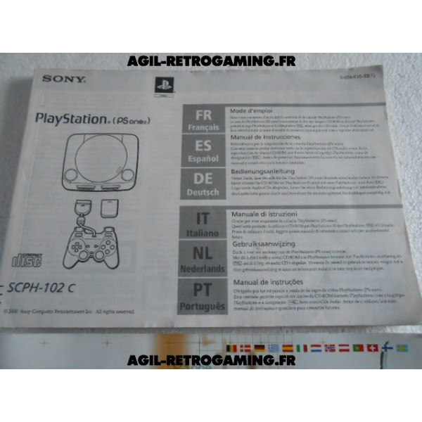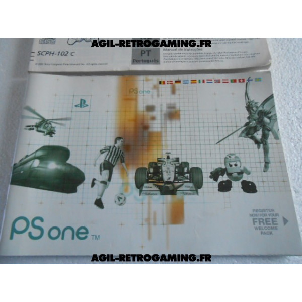 Manuel d'instructions pour console PS One PAL : SCPH-102C, mode d'emploi en multi-langues : français, espagnol, allemand, italien, hollandais, portugais + Livret de cartes d'enregistrement intact.